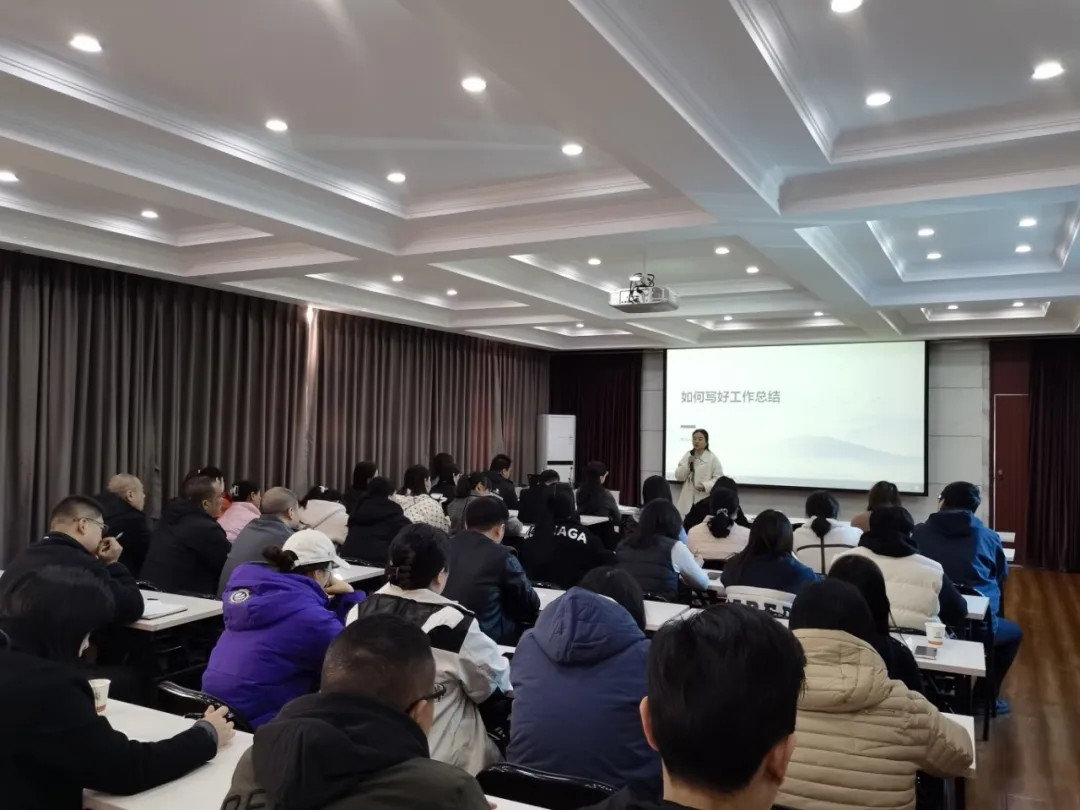 為更好梳理和總結(jié)年度工作,11月20日下午,機關(guān)綜合辦副主任郭芳娜以“如何寫好工作總結(jié)”為主題開展“公文寫作系列培訓(xùn)”第九期培訓(xùn)課程。路通公司副總經(jīng)理周麗娟出席活動現(xiàn)場,各部室、各單位職員40余人參加,綜合辦主任宋艷麗主持本次培訓(xùn)。